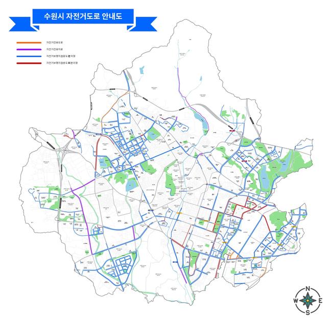 수원시에는 총연장 326.26㎞에 달하는 자전거도로가 구축돼 있고, 1만9천여 대를 거치할 수 있는 자전거 보관대 878개소가 있다.