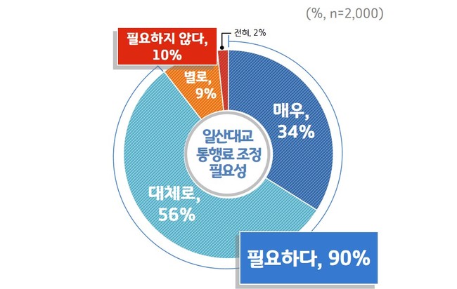 경기도민 10명 중 9명은 일산대교 통행료 조정에 대해 ‘필요하다’고 생각한다는 조사결과가 나왔다.