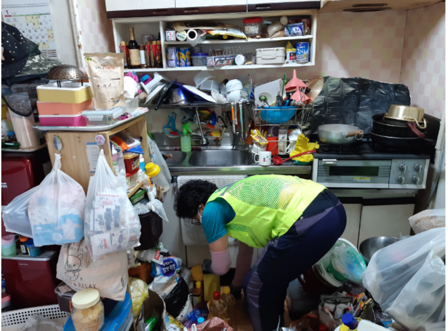 배우자가 사망한 뒤 홀로 거주해 온 주민 A씨는 사용하지 않는 오래된 장롱과 고장 난 세탁기 등 세간은 물론 폐지와 음료수병 등을 쌓아두고 지냈다. 불량한 위생 상태로 인해 피부병까지 시달렸고, 보다 못한 집주인은 퇴거 요청을 했으나 갈 곳은 없었다.
