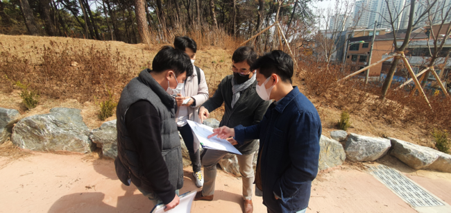 ‘공원녹지 조성 컨설팅 지원단’이 지난 3월9일 인계3호 공원을 찾아 현장 컨설팅을 하고 있다.