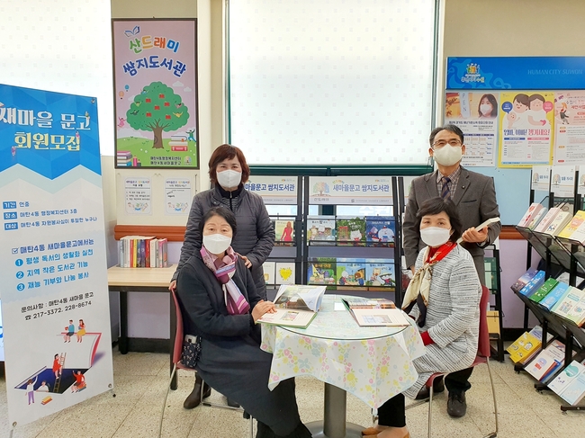 김동혹 매탄4동장은 “코로나19 장기화로 인해 다소 분위기가 침체되어 있지만 산드래미 쌈지도서관을 통해 주민들이 힘을 얻고 책 내음 나는 인문학 동네로 거듭날 수 있기를 기대한다”고 밝혔다.