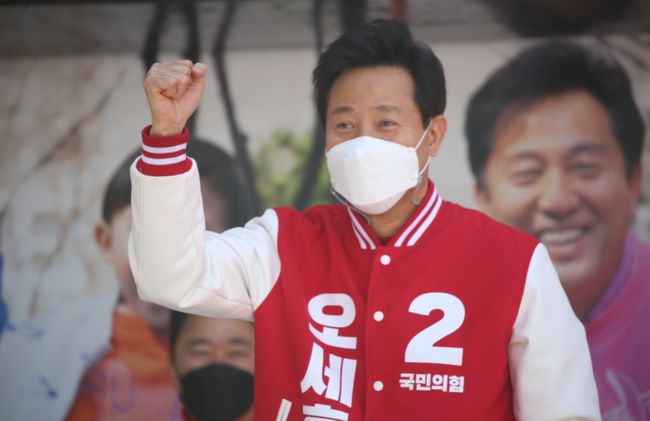 30일 오후 오세훈 후보 유세 장면.