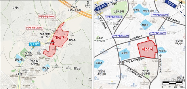 공공재개발 2차 후보지 선정 구역 '상계3 구역', '신길1 구역' (자료=서울시)