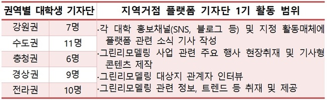 ‘대학생 기자단’은 5개 권역별로 총 43명의 대학생으로 구성되며, 오는 4월부터 본격적인 활동을 수행해 나갈 계획이다.
