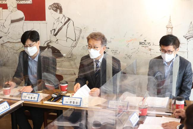 권칠승 중소벤처기업부 장관은 24일 서울 강동구에 소재한 할리스커피 굽은다리역점에서 전국가맹점주협의회 개별 브랜드별 가맹점 대표들과 간담회를 가졌다. (사진=중소벤처기업부)이번 간담회는 중기부가 코로나19 장기화로 인해 사업경영에 큰 어려움을 겪는 프랜차이즈 가맹점주로부터 프랜차이즈 관련 불공정거래행위 등에 대한 현장의 목소리를 청취해 제도개선 등 정책에 반영하기 위해 마련됐다.