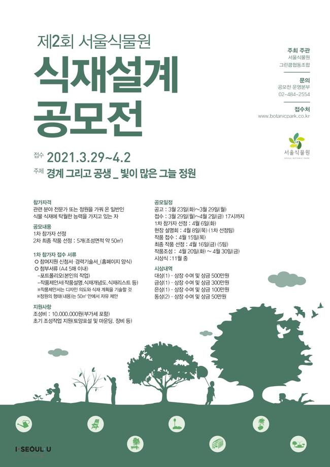 새로운 정원 조성 트랜드와 다양한 식재기법을 선보이는 '서울식물원 식재설계 공모전'이 지난해에 이어 두 번째로 열린다. 4월 중 정원을 조성하고 6개월 간의 평가를 거쳐 오는 11월 시상한다.