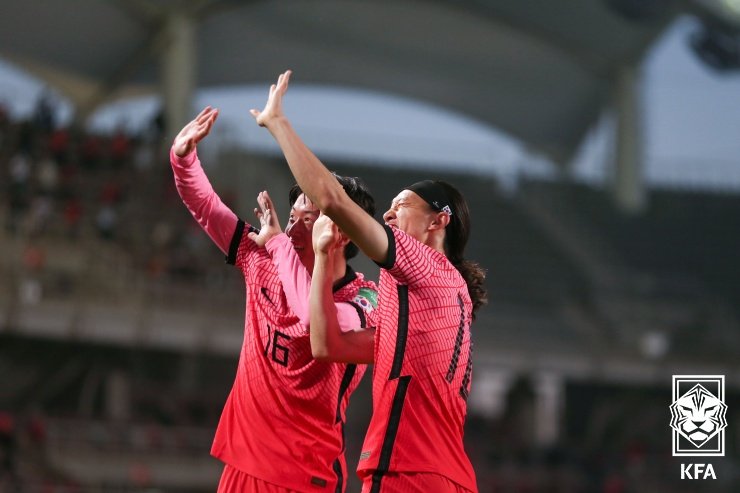 고양종합운동장 2022 카타르 월드컵 아시아 지역 2차 예선 한국 vs 투르크메니스탄 황의조 득점, 이재성 골 세레머니/ 사진 윤경식