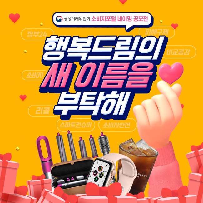 공정거래위원회(이하 공정위)는 22일 행복드림 열린소비자포털 서비스 시행 3주년을 앞두고 네이밍 공모전을 실시한다고 밝혔다.
