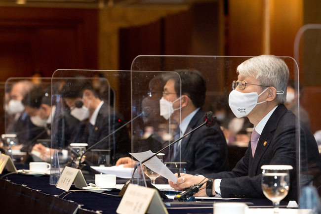 최기영 과학기술정보통신부 장관과 김강립 식약처 처장이 12일 ‘과학기술·정보통신기술(ICT) 정책과 식의약 안전 규제과학 정책의 협력을 위한 업무협약’을 체결했다. 사진은 2월 19일 제9차 코로나19 치료제 백신개발 범정부 지원위원회 당시. (사진=과학기술정보통신부)