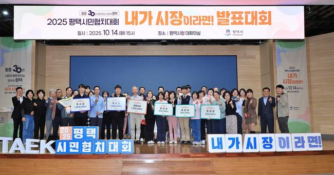 평택시(시장 정장선)는 지난 14일 시청 대회의실에서 올해로 6회째를 맞는 '2025 평택시민협치대회 '내가 시장이라면!'' 최종 발표대회를 개최했다.