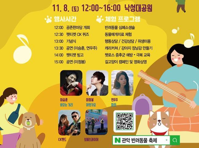 구는 식전 행사로 '펫티켓 OX 퀴즈'를 열어 참가자들과 반려동물 예절을 익히며 축제 분위기를 끌어올릴 예정이다. 이후 본 무대에서는 이정봉, 이승훈, 연우주 등 초대 가수의 다채로운 공연이 이어진다.