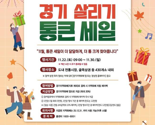 이번 하반기 통큰 세일에서 상반기와 달라진 점은 경기지역화폐 카드 결제 시 온라인 페이백으로만 진행되고, 1인당 1일 3만 원 한도, 행사 기간 내 12만 원까지 혜택이 지급된다는 점이다.