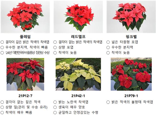 주요 국내 육성 포인세티아 품종과 계통