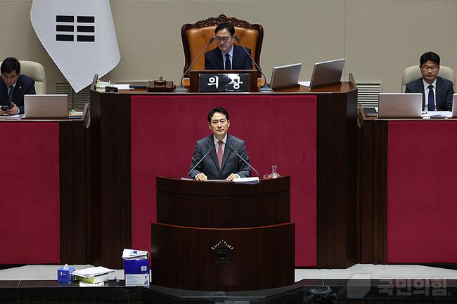 장동혁 당대표가 지난 23일 서울 여의도 국회 본회의에서 내란전담재판부 설치법에 반대하며 24시간 동안 홀로 무제한 토론을 진행하고 있다.