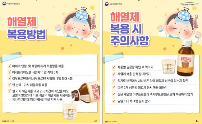 식품의약품안전처는 연말연초 휴일로 의료기관·약국 이용이 어려운 상황을 대비해 겨울철 소아 발열 시 가정에서 해열제를 안전하게 사용할 수 있도록 의약품 종류와 복용량, 주의사항을 26일 안내했다.