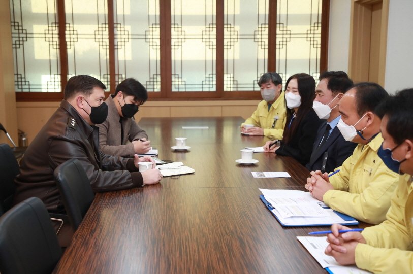 경기도 평택시 정장선 시장은 7일 윌러드 M. 벌러슨 미8군 사령관을 만나 최근 급증하는 코로나19 확진자 수와 관련 위중한 상황이란 인식을 같이 하고, 지역사회 감염의 최소화를 위해 코로나19 협력방안에 대해 논의했다.