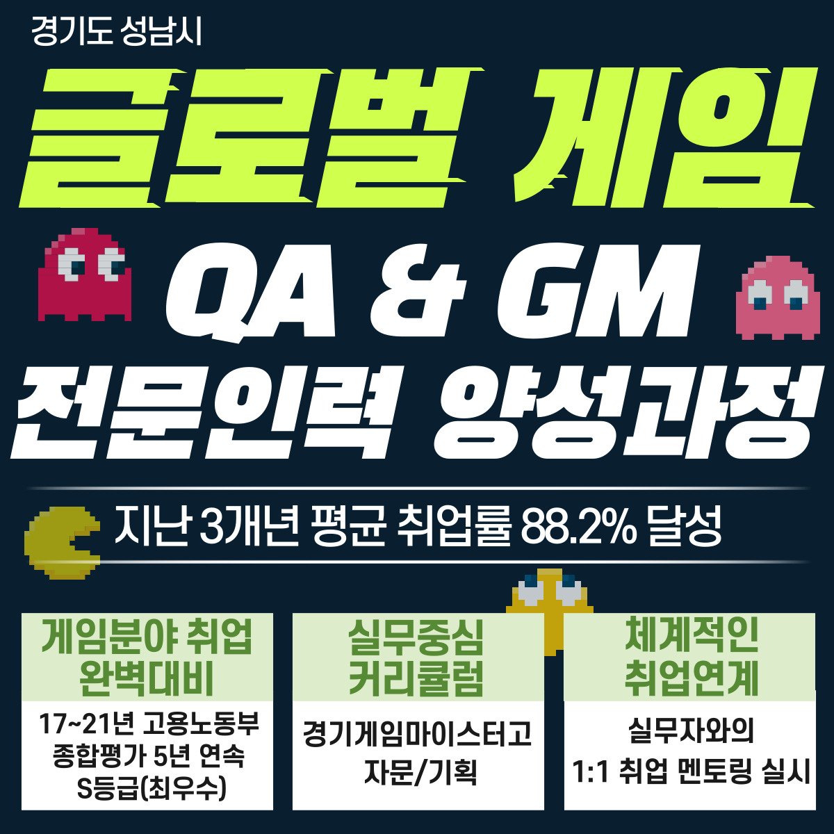 경기 성남, 글로벌 게임 QA&GM 전문인력 양성과정 모집...88.2% 높은 취업률 자랑