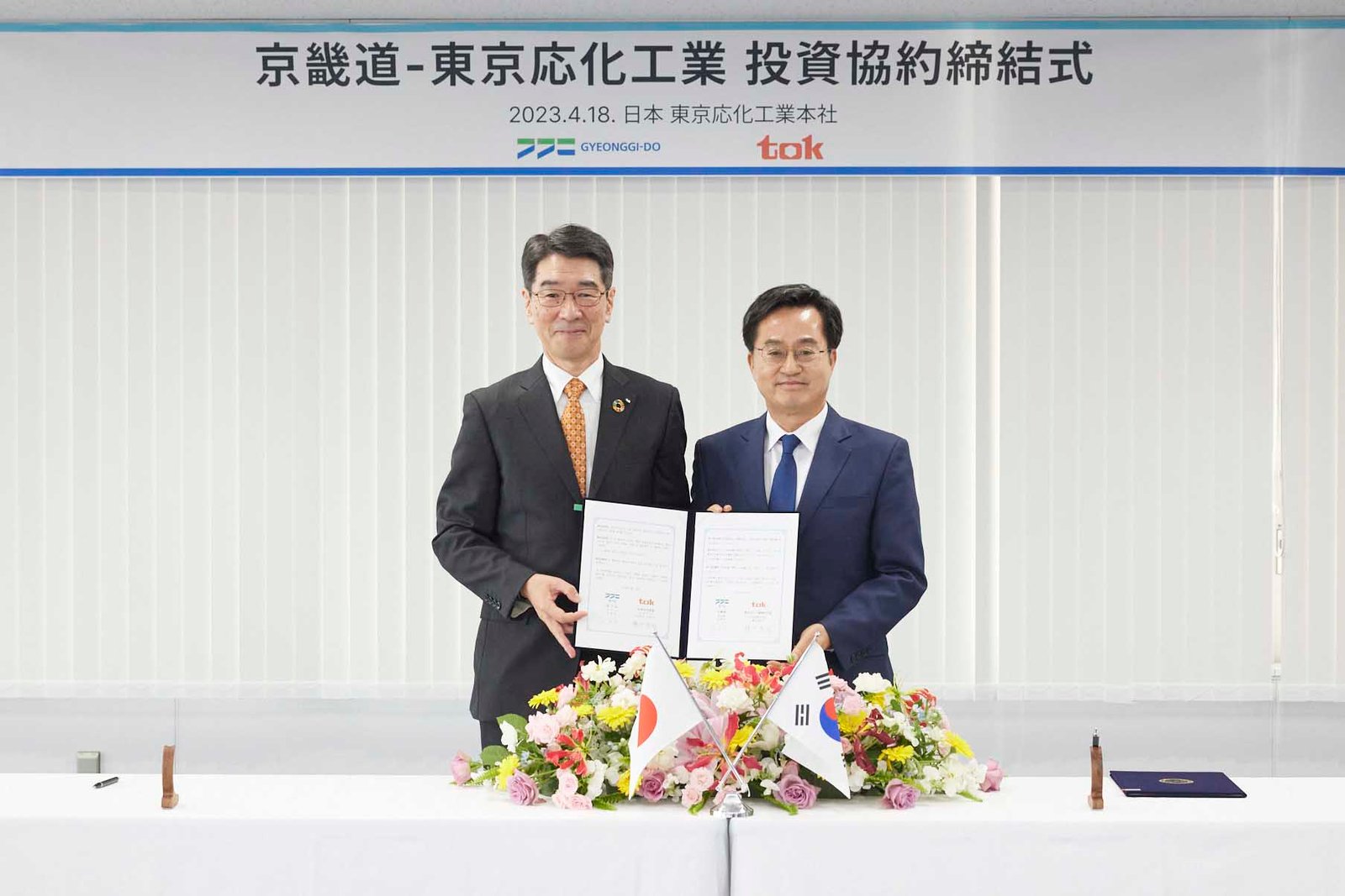김동연 경기도지사는 방일 3일 차인 18일 일본 가나가와현 가와사키시 도쿄오카공업 본사에서 타네이치 노리아키(Taneichi Noriaki) 일본 도쿄오카공업 대표이사와 이 같은 내용의 투자협약을 체결했다.