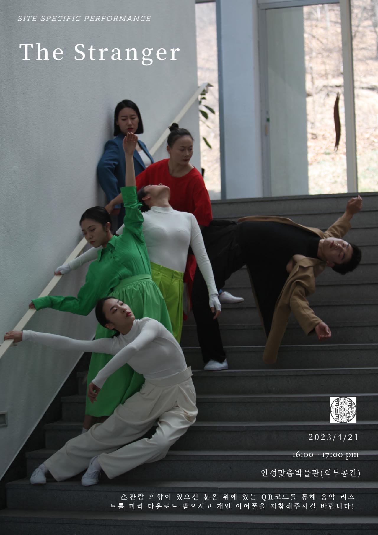 공연 ‘The Stranger’는 인간의 소속감을 탐구하는 작품으로 타국에서 살아가는 이방인의 감정을 표현하기 위해 현대무용의 신체 언어와 장소의 공간성을 결합하였다. ‘어디에 있든 우리의 어느 한 부분은 모두 이방인’이라는 의미를 담아 외국인이 느끼는 이질감, 외로움, 갈망 등을 공연에 풀어내었다.
