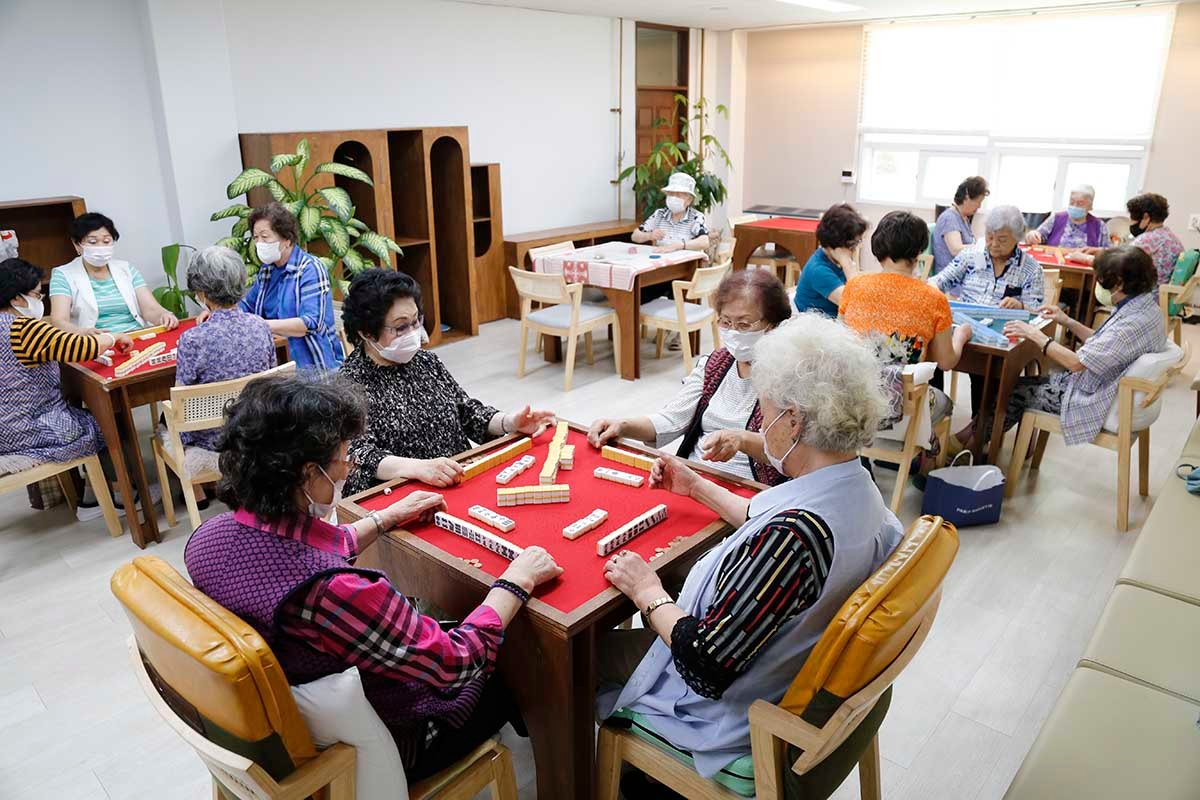 어르신들은 삼삼오오 모여 놀이를 통해 교류하며 시간을 보내고 있다.