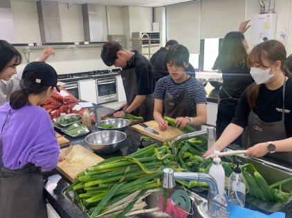 가천대 식품영양학과 학생 40명, 직접 만든 도시락 안나의 집에 전달하기 위해 재료 손질 중