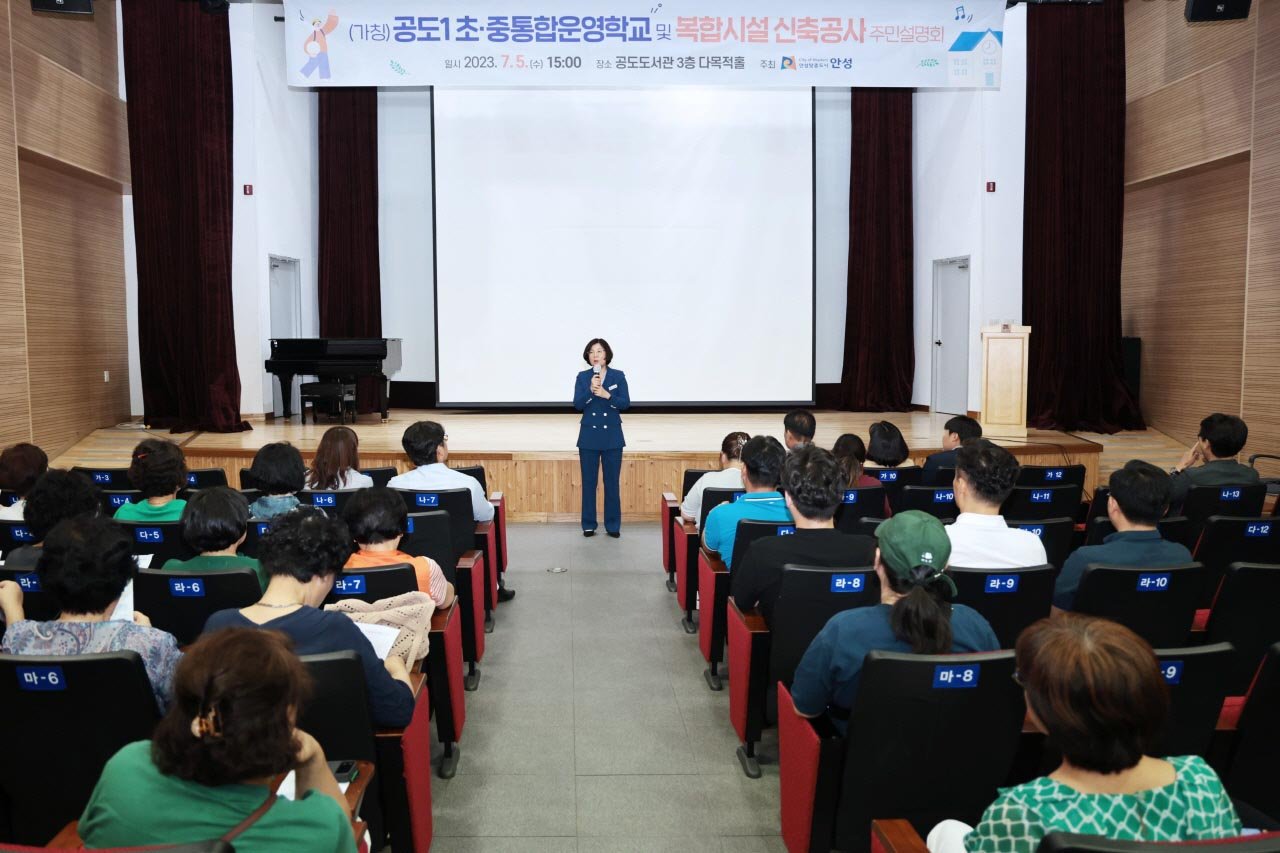 지난 7월 5일 안성시는 공도도서관 다목적홀에서 학부모, 지역주민을 대상으로 (가칭)공도1 초·중 통합운영학교 및 복합시설 신축공사 주민설명회를 개최하였다.