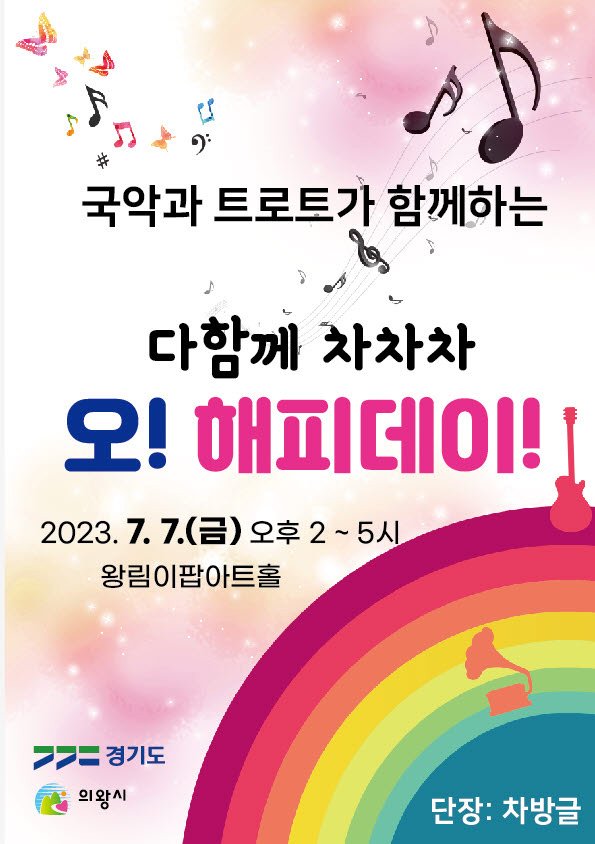 7월 15일 의왕시는 왕림이팝아트홀에서 국악과 트로트가 함께하는 ‘오! 해피데이!’공연을 진행한다고 전했다.