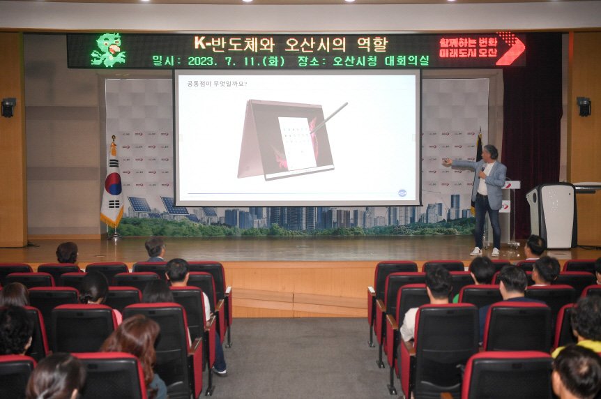 이날 교육에는 공준진 삼성전자 공과대학 교수(삼성전자 마스터)가 강사로 초빙됐다. 공 교수는 ‘반도체 산업과 오산시의 역할’이란 주제로 ▲반도체의 역사와 현재 ▲반도체가 갖는 미래 사회에서의 중요성 ▲반도체 관련 산업 유치를 통한 지역발전 등에 대해 설명했다.