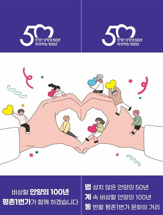 특히 현수기 하단에는 동 행정복지센터 직원들이 시 승격 50주년과 평촌1번가의 번영을 기원하는 마음으로 직접 작성한 삼행시를 추가해 눈길을 끌었다.