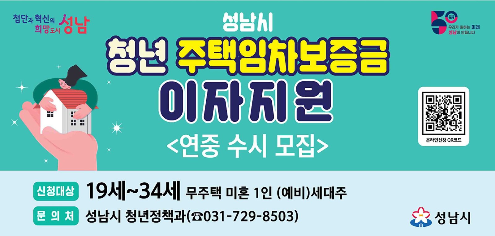 시와 협약한 NH농협은행 성남시지부에 최대 1억원의 전·월세 보증금을 대출받도록 추천하고, 대출이 이뤄지면 해당 이자를 연간 3%(최대 300만원)까지 지원하는 방식이다.