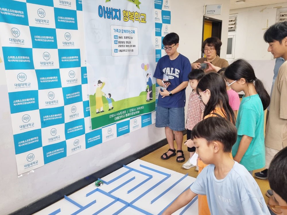 아들᛫딸과 아버지가 함께 만드는 코딩시간은 안양시 고등직업교육거점지구(HIVE) 사업과 연계해 관내 대림대학교 컴퓨터정보학부의 김영실 교수가 맡아 참여자 수준에 맞게 이끌었다. 가족은 머리를 맞대고 컴퓨터 언어로 프로그래밍을 했고 이 코딩을 활용한 ‘링키(linky) 자동차 경주대회’로 즐거운 시간을 보냈다. 경주대회 성적에 따라 다섯 가족에게는 장학금이 지급됐다.