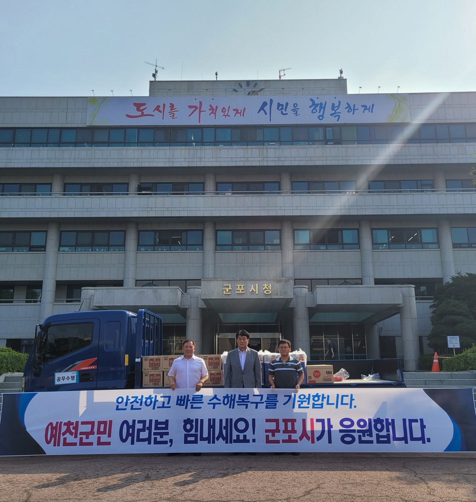 지난 7월 19일 군포시는 집중호우로 큰 피해를 입은 국내자매도시 경북 예천군, 충남 청양군에 구호물품을 전달했다고 밝혔다.