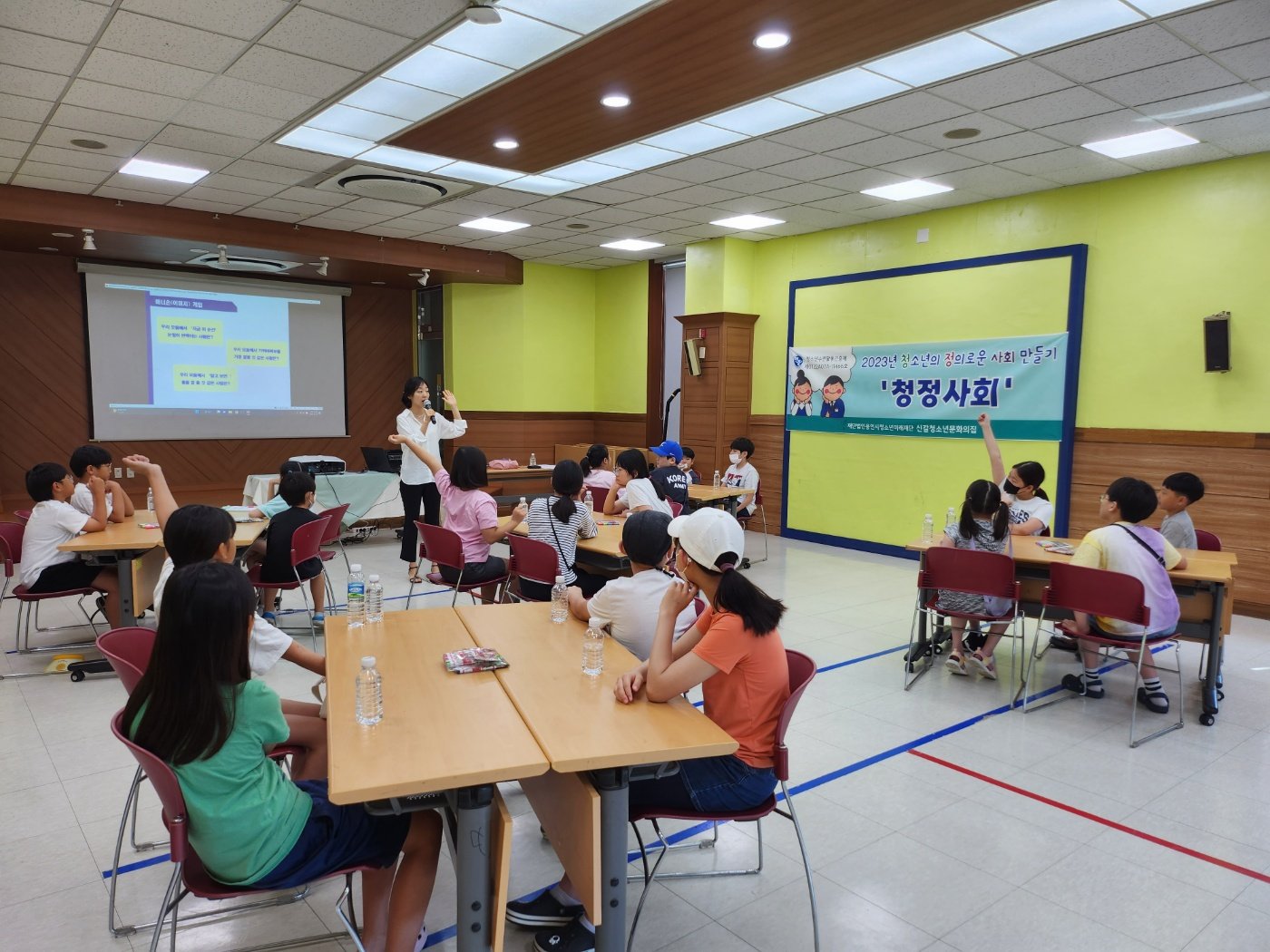 관내 초등3~6학년 20명을 대상으로 실시한 『청소년의 정의로운 사회 만들기‘청정사회’』1회차 활동은 청소년수련활동 인증제 프로그램(제0722A07A-11466호)으로 영화 속 인물의 상황들을 통해 청소년들이 생각하는 인권에 대해 적극적으로 소통하는 참여형 인권교육과, 생명존중의 마음과 정서함양을 위한 반려식물 만들기 체험을 실시하였다.