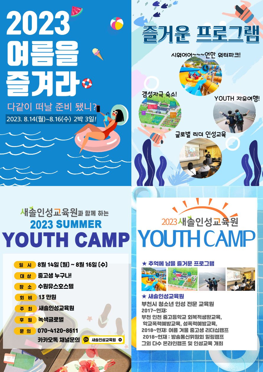 새솔인성교육원은 오는 8월 14일부터 16일까지 2박 3일간 수원 유스호스텔에서 “2023 여름을 즐겨라” 라는 주제로 하계 인성캠프를 진행한다고 27일 밝혔다.