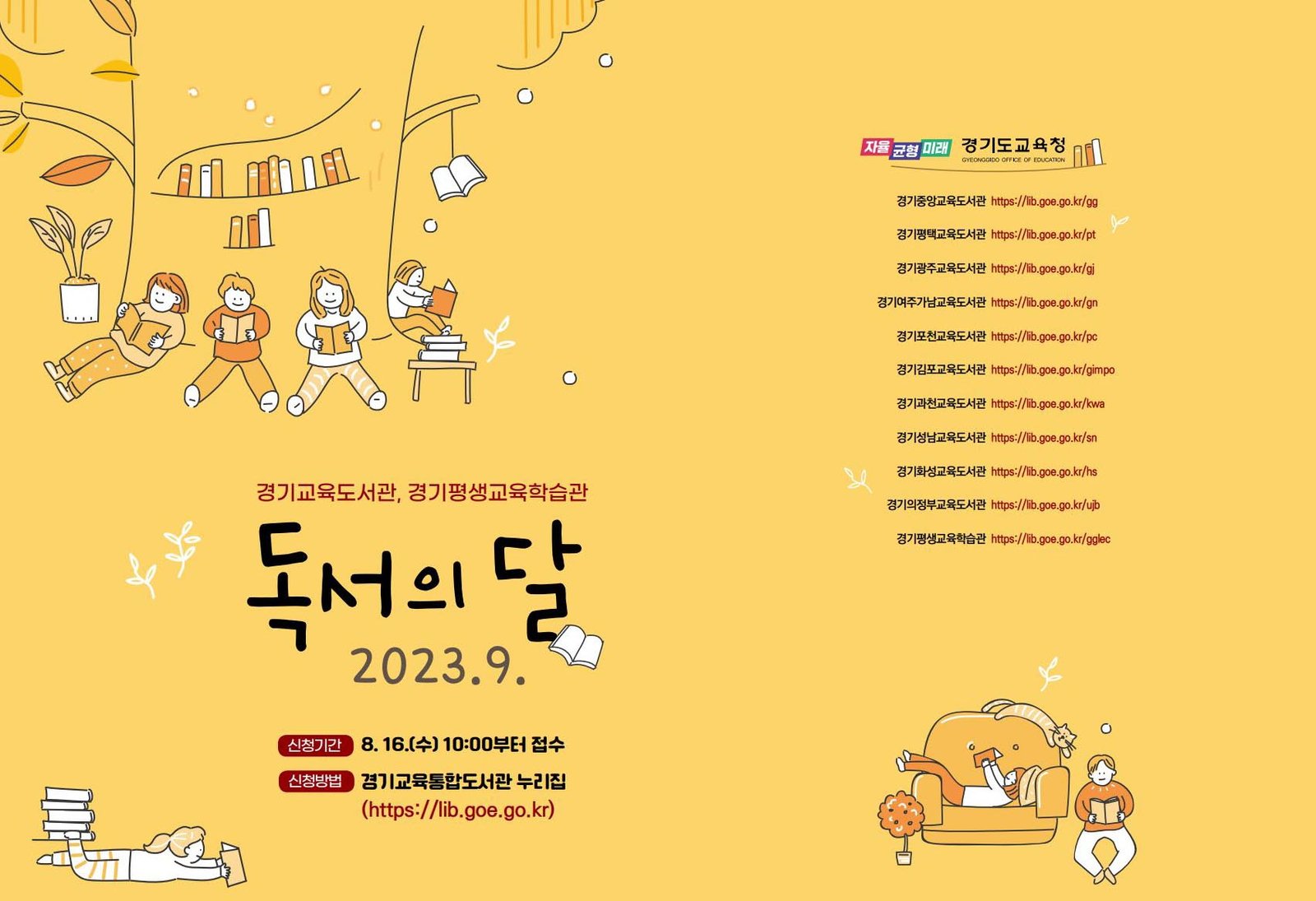 경기도교육청이 9월 독서의 달을 맞아 10개 경기교육도서관과 경기평생교육학습관에서 한 달 동안 학생과 지역주민 대상으로 책의 즐거움을 느낄 수 있는 다양한 전시, 공연, 체험, 이벤트 등 140여 개 프로그램을 운영한다.